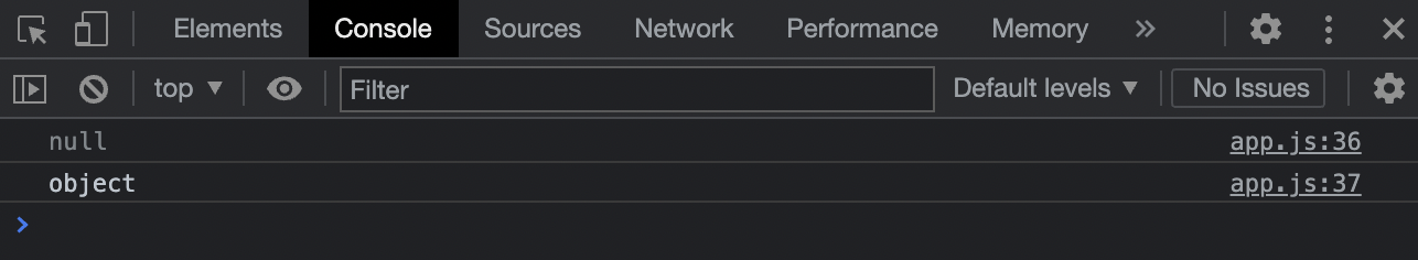결과를 보면 null이 할당된 변수의 타입이 object인 것을 확인할 수 있습니다.